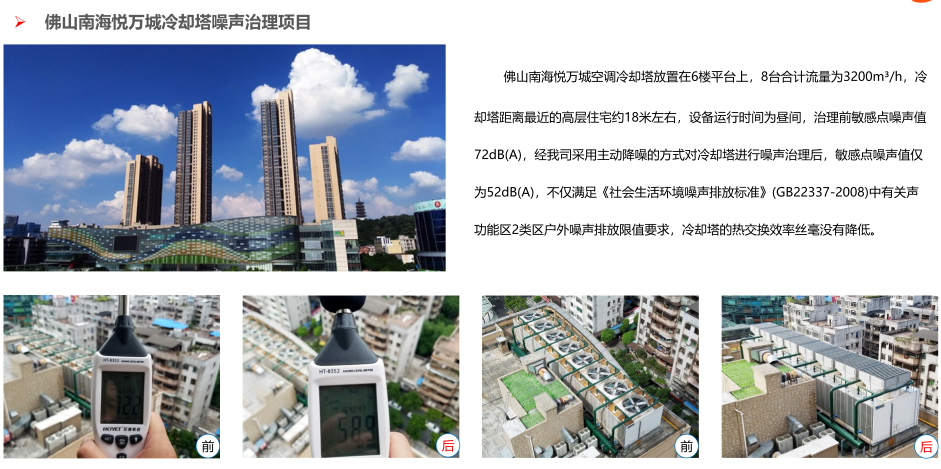 以上就是冷卻塔降噪廠家廣東特菱空調為大家帶來關于佛山南海悅萬城冷卻塔噪聲治理項目的內容,更多冷卻塔問題歡迎來電咨詢我們哦。